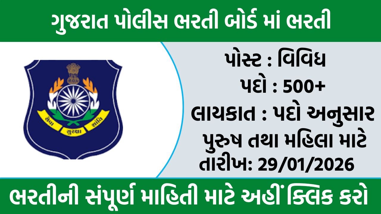 Gujarat Police Recruitment 2026: ગુજરાત પોલીસ ભરતી બોર્ડ દ્વારા 900+ વિવિધ પદો પર સ્ત્રીઓ તથા પુરુષો માટે ભરતી જાહેર