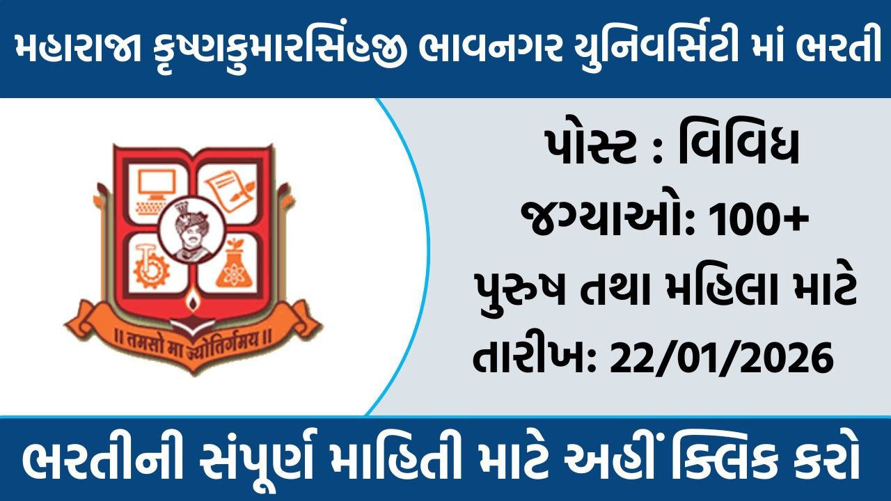 MKBU Recruitment 2026: મહારાજા કૃષ્ણકુમારસિંહજી ભાવનગર યુનિવર્સિટી દ્વારા 100+ વિવિધ પદો પર સ્ત્રીઓ તથા પુરુષો માટે ભરતી જાહેર